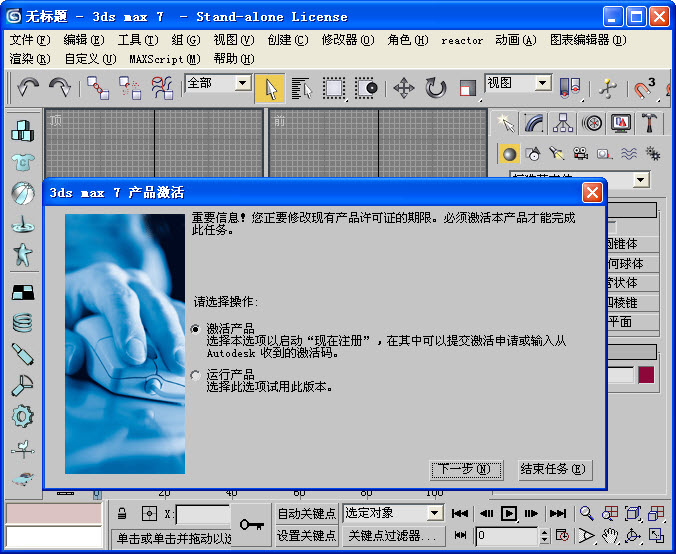3、打开3ds max 7商品激活 窗品,选择“激活商品”操作,再下一步。