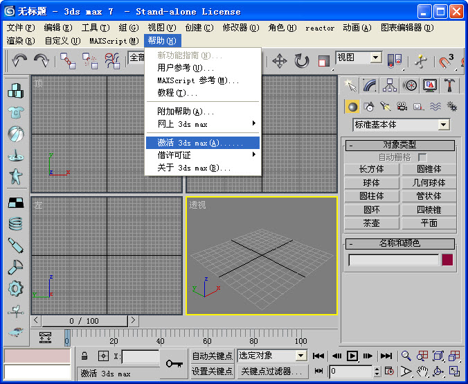 2、打开菜单栏里的帮忙-激活 3ds max,如下图: