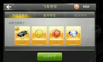 第四步:所谓的10倍抽奖几率,也是个坑,怎么样?金币真心抽的几率非常大,有没有,中了七八次金币都不见得有一辆s车,除去金币,几率最大的就是钻石,武器也是稀罕物,能中就万幸了,同一时间抽奖的人有多少啊?抽到极光s车真心难,所以真心是个大坑,小伙伴们,入坑需小心!