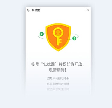 开通了帐号宝服务后,帐号宝能为QQ用户提供“事前、事中、事后”安全测试及防护,提高帐号安全系数10倍。