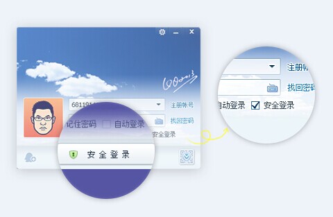 安全登录是帐号宝与QQ联合推出的一项帐号安全服务,已开启此服务的用户在QQ登录框上会看到“安全登录”按钮,安全登录的QQ可以最大程度防范帐号失窃、好友被骗。(QQ5.2及以上版本才能用)