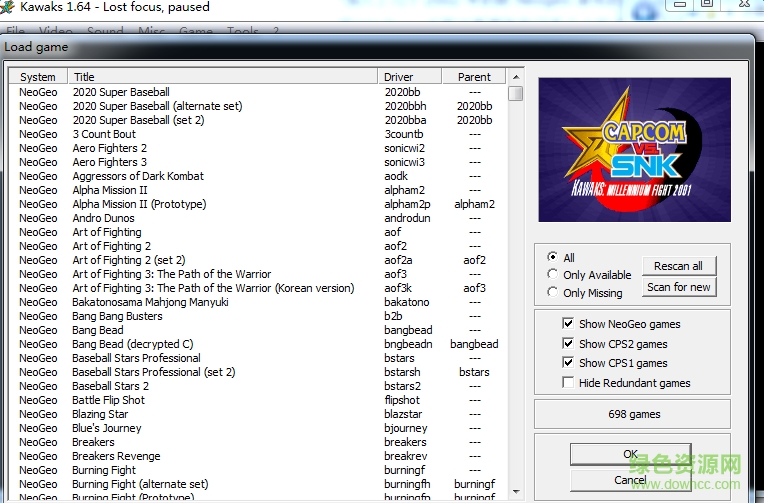 winkawaks1.64街机模拟器,是一款电脑版街机游戏模拟器,用本款模拟器你可以随时在电脑上玩什么拳皇、名将三国、圆桌武士、魂斗罗等经典的街机游戏,中文版叫你用愈加的便捷,需要的用户就快来绿色资源网下载吧!