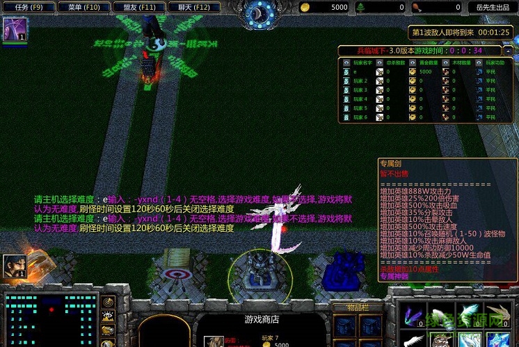 困难程度0 每120秒刷怪 增加怪物0%属性