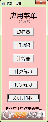 鸭梨工具箱是一款PC端小工具集合软件,也是一款由网友制作的小工具软件,软件提供点名器、打地鼠、计算器、定时关机等功能,总体来讲是一款很好的电脑工具软件,有需要的朋友欢迎下载用!