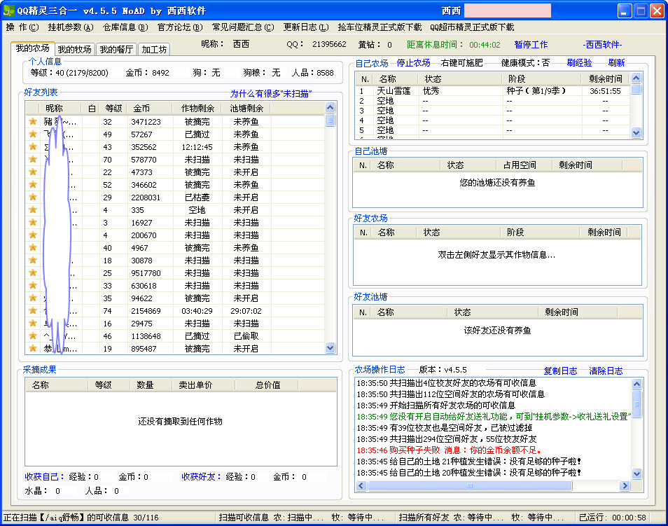 2、自动扫描好友的农场,支持校友,可以定时扫描好友的可操作信息(可摘、可浇水、可除草、可杀虫),并自动进行摘取、浇水等操作;