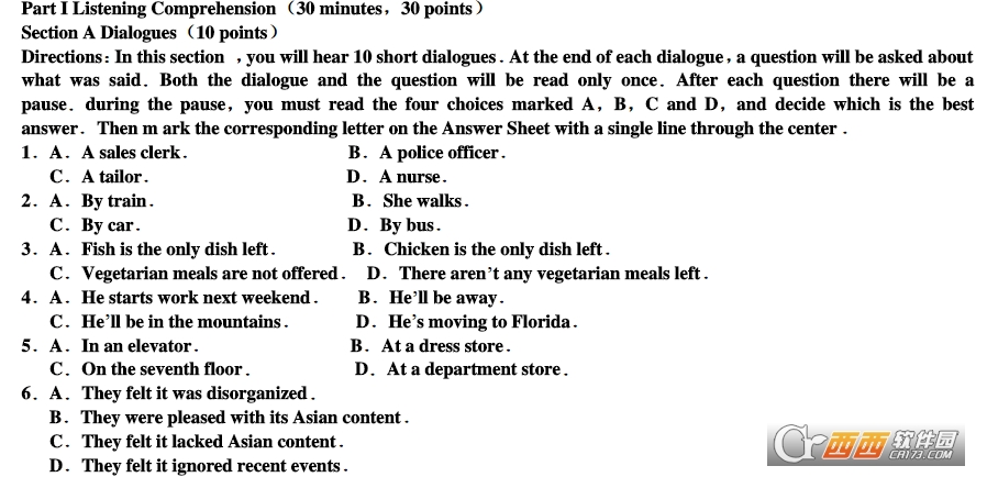 Part IListening Comprehension (25 minutes, 30 marks)(略)