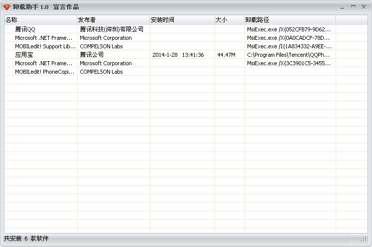 卸载小助手是一款简单的软件卸载工具,直接运行就会显示你已安装的软件