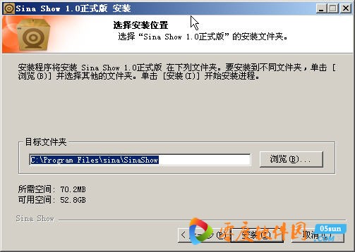 不进行路径选择,并点击下一步,将把Sina Show安装于系统默认路径。