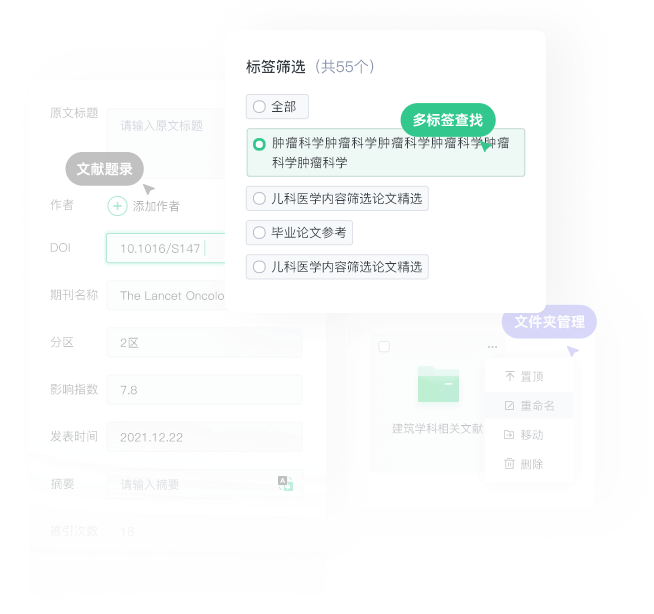 7种科研场景下的笔记模板,直接套用更便捷,边阅读边整理,即便散落在不同文献中的内容也能有效管理,标签筛选搭配智能搜索,精确锁定文献。