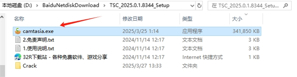 5、安装完成后,右键找到软件目录。默觉得【C:\Program Files\TechSmith\Camtasia 2025】,将压缩包内的【Crack】中的文件,复制替换到默认目录当中即可;