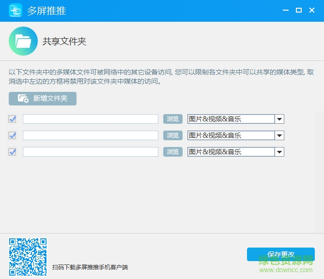 多屏推推是多屏推推的pc推广客户端,可以通过WIFI可以将视频、音频、图片共享到电视上和手机端播放,用起来非常便利!