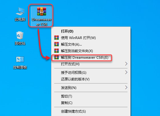 2、鼠标右击【Dreamweaver CS6】压缩包选择【解压到 Dreamweaver CS6】。
