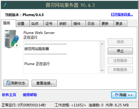 Plume Web Server微羽网站服务器是一款体积小巧用便捷的Web服务器软件,这款服务器支持CGI、FastCGI、ISAPI等等,可以运行 PHP、ASP、ASP.NET 等格式主流网站程序。