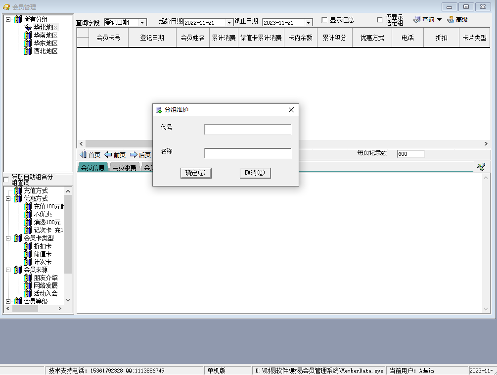 在导航栏左侧,点击右键,可以增加统计分组,子分组。在导航栏右下角,可以设置会员等级,会员分类等其他配置信息。