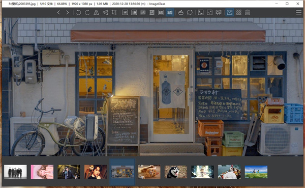 4、可以启用缩略图。缩略图会显示同一路径下的其他图片。从而可以更快的找到自己需要的图片。5、ImageGlass中文便携版还可以进行幻灯片播放图像与自带取色工具。