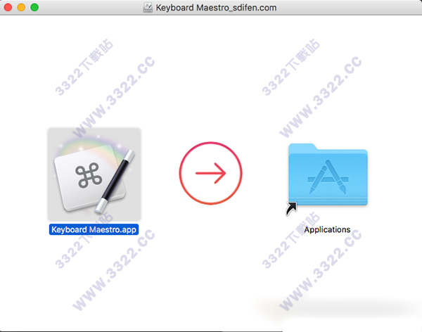2、然后会出现一个弹窗示意大家将“Keyboard Maestro.app”拖入到应用程序的文件夹中,大家照做,将它拖入进来即可