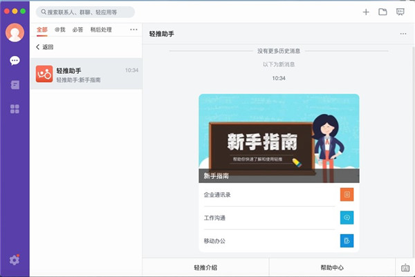轻推mac版是面向千万团队企业公司塑造的一款多平台协同办公软件,适用于macOS系统。这款软件集互联互通、协同、轻应用于一体,可帮助团队、企业及公司愈加高效便捷的通讯,节省很多交流本钱,让团队里的每一个人都能高效地获得资源,大幅提高共享水平和革新能力,容易工作。此外,它不只可以融合自主常识产权的进销存套件等软件商品、集成ORACLE、SAP等国际领先的大型信息管理软件,为大型集团级企业提供从IT规划、基础设施建设、信息管理软件推行到运维,进行全生命周期服务,还可以借助中冶赛迪在工程技术钢铁行业方面积累的经验和优势资源,提供工程管理智慧制造有关的各项服务,让团队里的交流协作随时随地、容易高效。