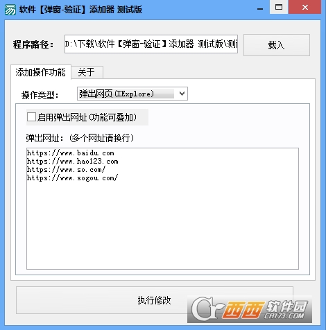 软件弹窗|验证添加器是一款很好用的给软件加弹窗验证的小工具,支持弹出网页,弹出信息框,打开指定文件和运行CMD管理命令,还可以添加QQ群验证等等很给力,是一款可以保护原创软件的小助手,有需要的朋友欢迎用。