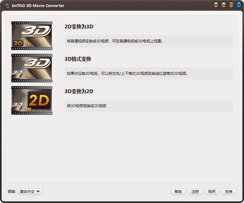 ImTOO 3D Movie Converter 界面语言有英语,法语,德语,日语,西班牙语,意大利语,葡萄牙语,简体中文和繁体中文。