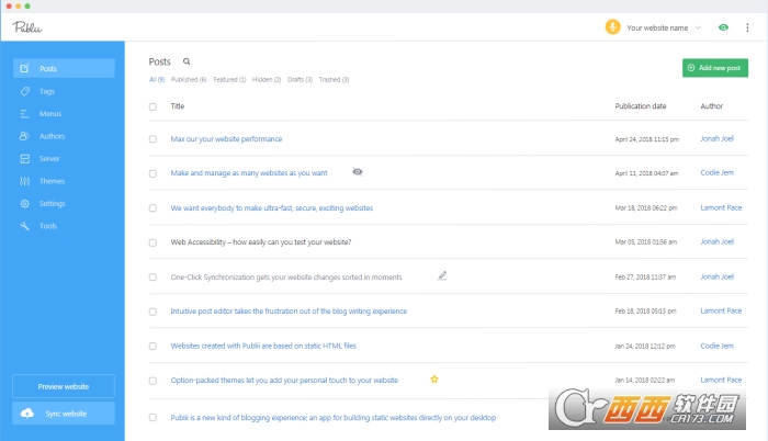 还在为搭网站制作哀愁?来试一试这款工具吧!《Publii》是一款可以帮助用户在电脑上布置博客页面,且界面友好、功能出众、操作轻松的静态网站迅速生成工具。Publii官方版可以帮助用户在几分钟内打造一个安全、迅速、流行的静态博客网站,并且为你的博客网站提供全方位的网站排名优化套餐。