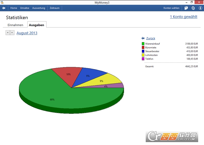 SoftwareNetz MyMoney是一款易于管理和存档财务的程序。你仅需点击鼠标即可收到有关帐户变动的评估和统计信息。MyMoney支持HBCI银行pin / tan,paypal帐户和文本或CSV导入销售。 有需要的小伙伴欢迎来西西下载。