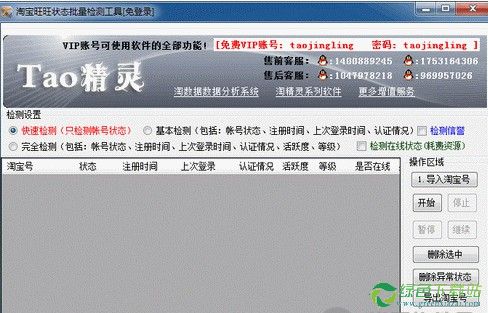 旺旺账号信息查看是一款批量测试淘宝旺旺号是不是异常、被封、注册时间、最后登录时间、认证状况、活跃度、等级、信用的软件,不需要密码,免登录批量查看淘宝旺旺状况!可以自由排序、删除选中、一键删除异常状况的帐号、导出等!
