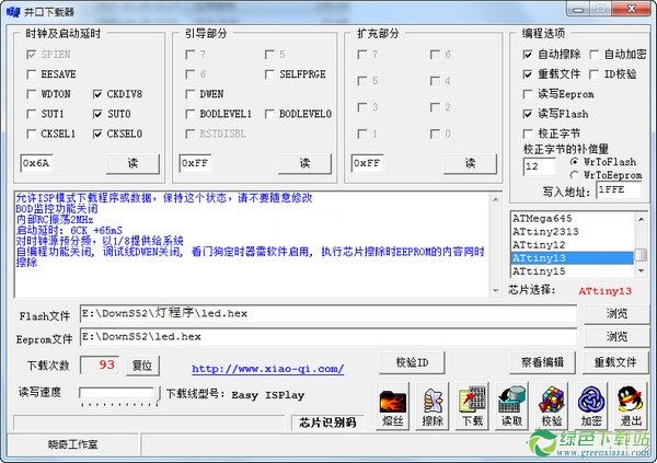 并口下载器下载线软件,支持stk200/300,byteblaster/MV,Easy ISPlay下载线,可下载s51/52,mega48/88等常用22种芯片,,附带熔丝设置状况报告。