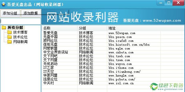 吾爱无盘网站网站收录利器是一款便捷大家珍藏常用网站的网址珍藏器,软件记录大家常见的网站。说明:纯绿色免安装。可直接在U盘里运行。便捷携带,搜索可以用首拼搜索。