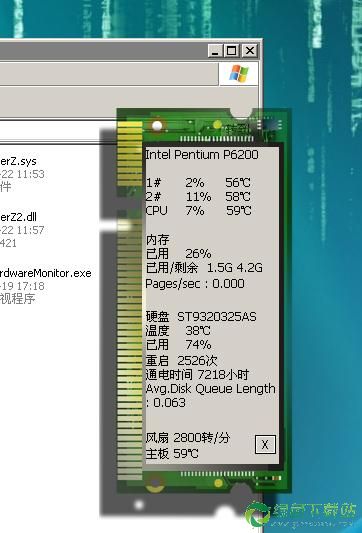 硬件监视程序显示于桌面的硬件信息监视程序,包括cpu用率、cpu温度、内存容量用状况、pages/sec 计数器、硬盘温度、硬盘容量用率、start/sTOP count、power-on hours 、avg.disk queue length计数器、cpu风扇转速、主板温度