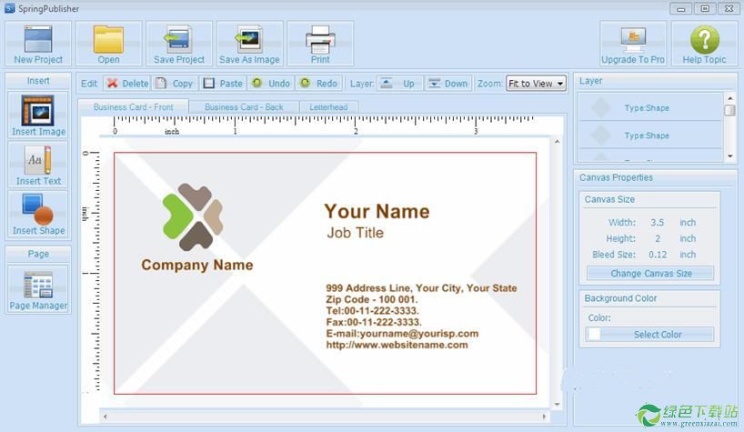SpringPublisher是一款的针对名片类的设计排版工具。这款软件是全英文外国软件功能强大,操作十分的方便,不懂英文的用户也可以轻松用。软件中可以插入多种形式文件,并进行修改,除去名片还可以制作明信片、传单、信笺等。【使用详解】1.插入所需:用户依据我们的需要支持图像、文本、图形、地图、微信二维码、名字等。2.自由排版:依据自己所需进行排版组合3.打印:直接选择自己需要的打印纸类型和打印机进行打印