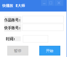 E大师快手刷播放量软件是一款便捷易用的快手刷播放量软件。这款软件界面美观,可以叫你轻松刷快手播放量,我们会为这个软件维持持续更新。 【软件功能】1、下载并打开软件,输入作品账号和快手账号。2、输入时间,点击开始即可。