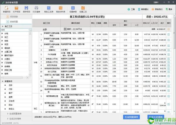 迷你家居装修预算是一款家居装修预算软件,简洁易用、小巧快捷、智能自动,迅速完成家居装修预算,包含工程量清单、主材清单,有需要的赶快下载吧!