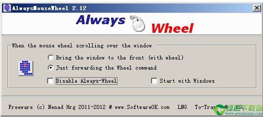 AlwaysMouseWheel是一款鼠标滚轮增强工具,提供与众不同的窗口激活方法,假如你感觉鼠标左键用过度,可以考虑下载AlwaysMouseWheel来试一试哦,只须将你的鼠标移动到非活动窗口上,拨动鼠标滚轮,就能立马激活了。