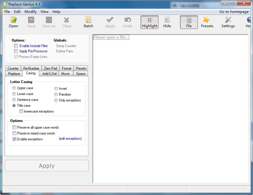 Replace Genius 支持 txt, Word 与 Excel 文档,所有些设置都在左侧,主要有 10 个小功能。