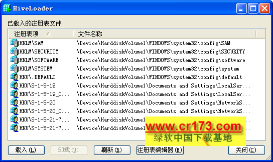 HiveLoader 程序允许你装载及卸载注册表文件,并且能创造新的注册表文件的一个强有力的系统工具