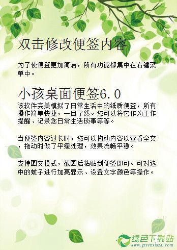 孩子桌面便签是一款简单、实用、个性化、可自概念模板的桌面便签软件。