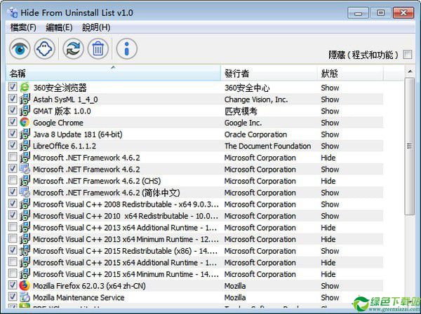 Hide From Uninstall List主要的功能就是让程序从卸载软件的界面消失,网上的课程都是通过修改注册表的方法来达成,用Hide From Uninstall List就能迅速完成操作!