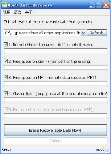 Moo0 Anti-Recovery 使你可以彻底清除在空白地区残留的可能被恢复软件恢复出来的文件,使文件再也没法恢复。