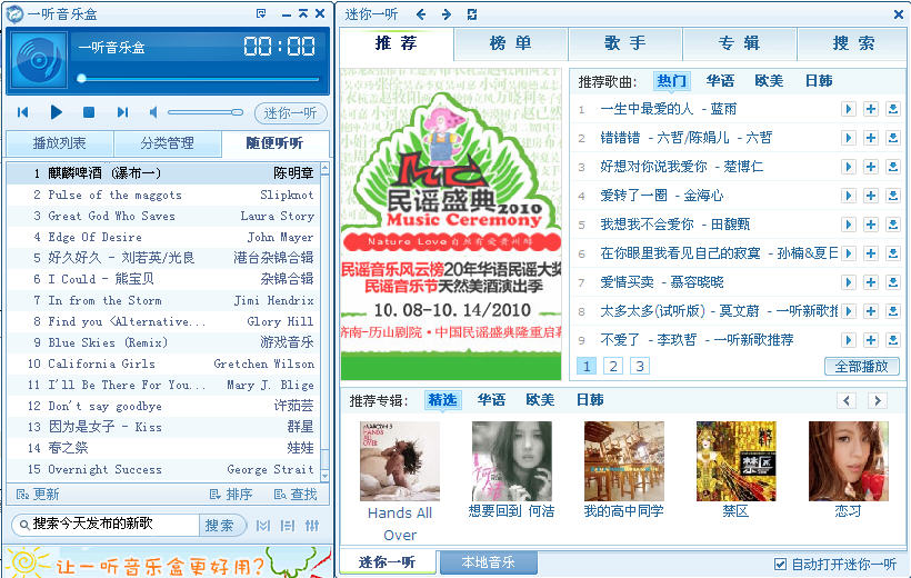 5. 纯绿色的软件一听音乐盒2.0beta2最新版本更新1.增加迷你一听