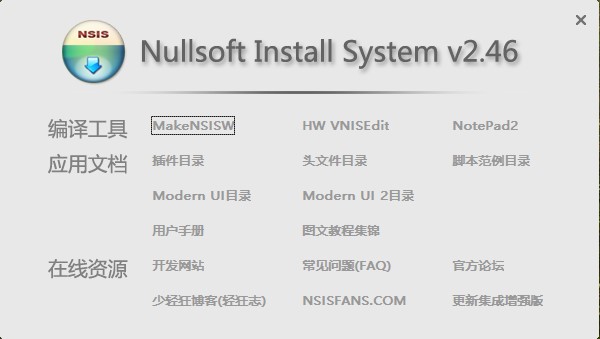 Nullsoft Scriptable Install System即可以简称为nsis,也可以是nullsoft,这是一款十分专业的安装程序制作工具,通过它可以高效迅速的帮忙用户创建所需的安装程序,并且还同时能设置程序的安装、卸载、设置系统设置、解压文件等等,可非常不错地满足不同用户的各种需要。同时,得益于这款nsis安装程序制作工具中强大的开源系统优势,用户在此可以直观高效地创建Windows 安装程序,并且因为软件中凭着体积小、速度快和高效率等特征,深受行业内用户的喜爱。不只这样,这款nsis软件中兼容所有主流的Windows 操作系统,同时还使用了独特的压缩方法,让用户不需要进行繁琐的操作,即可轻松达成压缩打包。另外,类别于其他安装系统而言,在这款nullsoft脚本安装系统中文增强版中,要你管呀一个强大的脚本语言,有了该脚本语言,在制作安装程序时可以帮助用户实行任何安装人物的命令,在此你还可以添加自概念逻辑和处置不一样的升级、版本测试等。其中最为一提的是,该版本与一般nsis版本相比有着独特的优势,在nsis安装程序制作工具中文增强版中进行了全方位的优化与升级,此版中拥有典型和新式向导界面,将功能愈加直观的呈现给用户,还可以通过注册表测试目的目录,添加标准向导页面或自概念页面,甚至最为一提的是,安装程序的最高限制已经达到了2GB,非常不错地带给了用户前所未有些用体验。简而言之,这款nsis安装程序制作工具虽然体积小巧,但五脏俱全,欢迎有兴趣的朋友免费下载体验。