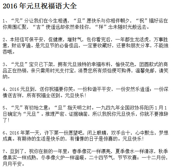 2016年元旦祝福语大全