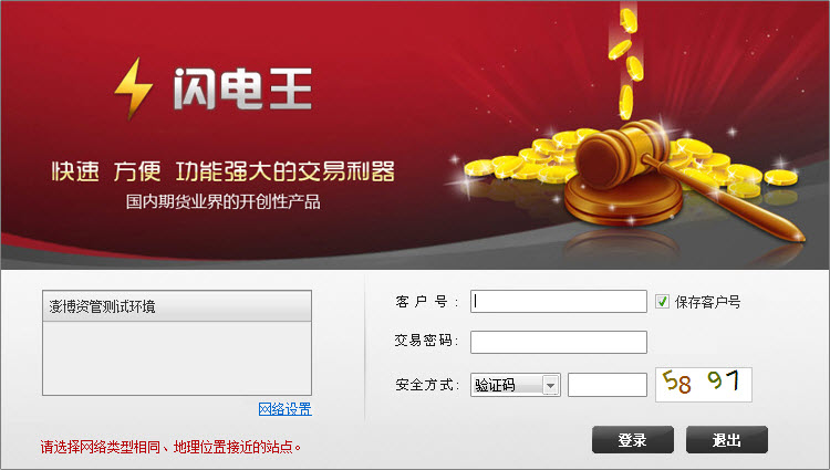 闪电王是一款澎博资管环境测试版软件,专业买卖前端,技术构架先进,界面设计灵活独特,支持股票期权买卖,富的下单设置,简单快捷的操作,让你随性。体验买卖的乐趣,达成财富的梦想,感受快如的闪电的下单速度。这款软件功能强大,有需要的可以来下载用!
