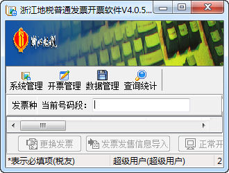浙江地税普通发票开票软件是浙江地税局开发的一款普通发票开票软件,这款软件的主要功能是企业开票,因此系统把开票的各种功能以按钮的形式放到主界面中,功能直观简单,符合手工操作习惯。软件充分考虑了企业可能开票量较大的状况,支持多个分开票机的用法,保证从办税服务厅领用的发票正确分配到各台分机,报送时,又能正确大全各分机的发票数然后报送到地税局。日买卖、区间买卖、库存查看等均满足企业一般查看需要。随时学会开票状况。
