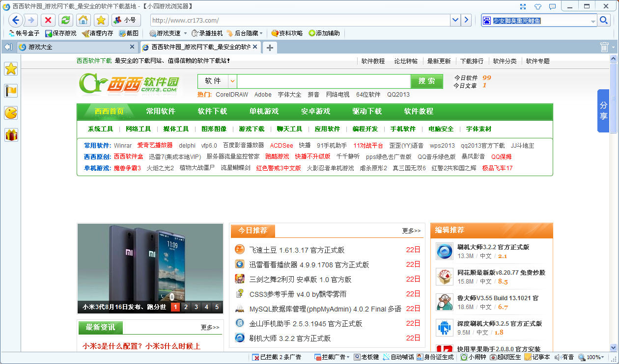 通用辅助:游戏变速,小号多开,账号盒子,键鼠录播,截图工具,资料攻略,游戏大夫,闹钟,记事本,一键静音,自动喊话,老板键[2013-05-19] 小四智能浏览器/小四游戏浏览器 V1.1正式