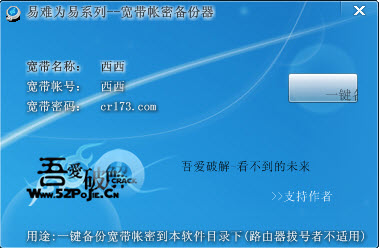 主要面向对象是装机修理职员.为的是重装系统前把顾客的上网帐号密码保存下来,以免因你重装系统后丢失帐号密码而致使顾客上不了网。 PS:
