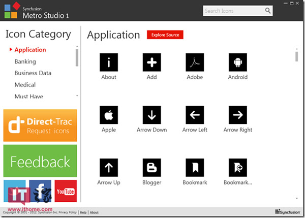 图标分类十分明确:假如你是一个Metro风格的WPF开发喜好者,Metro Studio本身就是一个非常不错的参考素材,看一下它的主界面风格吧:大家可以自概念每个Metro图标,包含颜色,大小,等等,自动同步XAML代码非常高兴,这么一款出色的工具现在是不收费的,Syncfusion企业的官方网站也看上去格外诱惑。