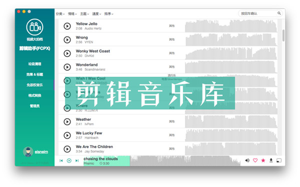 6、大量视频剪辑专用无版权音乐3、拥有大量音乐进行搜索用,为视频剪辑选择是自己最灵动的音乐