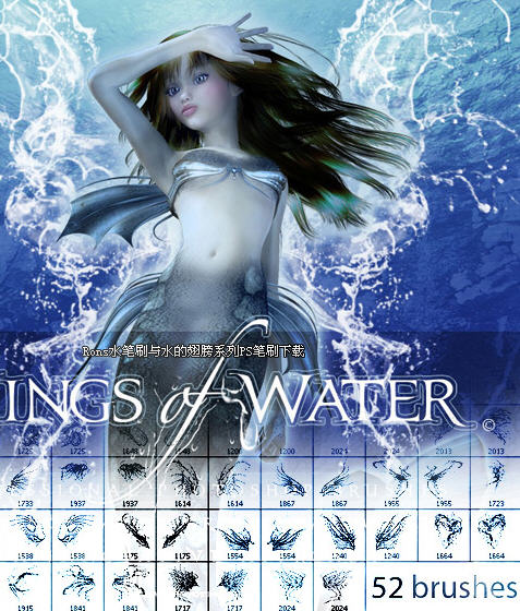Rons水笔刷与水的翅膀系列PS笔刷,水与翅膀完美融合,成效很赞,喜欢的朋友可以下载看看