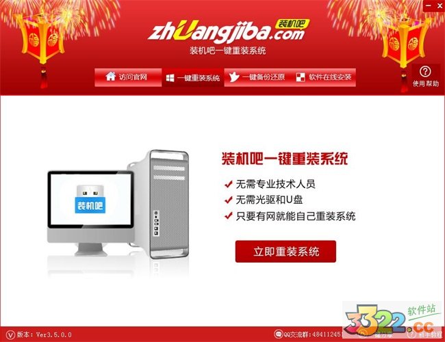 对于一些用户来讲,重装系统是件非常头大的事,第一需要找系统镜像文件,第二需要筹备启动盘。所以我们为用户带来了装机吧一键重装系统来帮助用户重装系统。装机吧一键重装系统是一款容易快捷的系统重装软件,新版优化了内置的迅雷加速引擎与文件/系统的备份还原的安全性,另外还加入了开机界面的还原系统按钮,有了这一功能即便系统彻底崩溃也能通过此操作恢复安装好电脑系统。而且傻瓜式的操作方法可以帮助不会用系统重装的用户迅速便捷的完成这类操作。