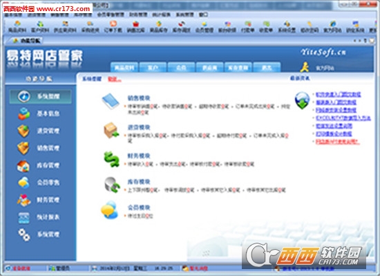易特店铺管家是一款专业的针对淘宝店铺管理的ERP,其中包括产品销售管理、库存管理、财务和报表系统等子模块。软件界面设计简洁,美观,其人性化的软件步骤,使普通用户不需培训也能非常快学会软件操作用法,上手极易。强大报表与集成查看功能是本软件的最大特点,所有功能在用户需要的用法地方自然体现,不需要打开多个窗口重复查看。适用于商贸公司,个体店铺等用于商业销售管理, 库存管理,财务管理等,会员管理,职员管理等场所,是你企业进行信息化管理的强大工具。适用对象:淘宝卖家,线上线下实体等销售公司及个体。